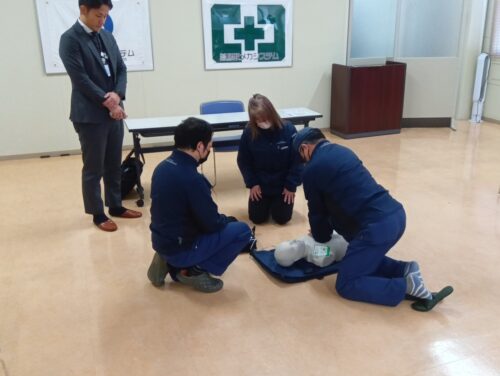 これまでに社内ではAEDを必要とする事案は発生していませんが、万が一に備え、今後も継続して講習を実施し、迅速かつ適切に対応できる体制づくりを進めてまいります。